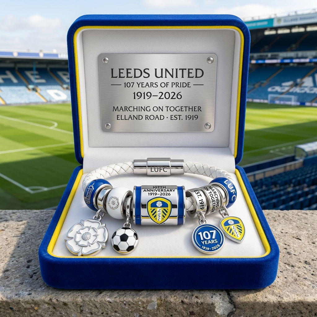 🎁The design incorporates “Marching On Together” and Est. 1919 elements, alongside a commemorative 107 Years medallion and classic Leeds symbols. From the braided white leather band to the polished silver accents, the piece balances tradition and modern refinement—celebrating the passion that defines LUFC across generations.